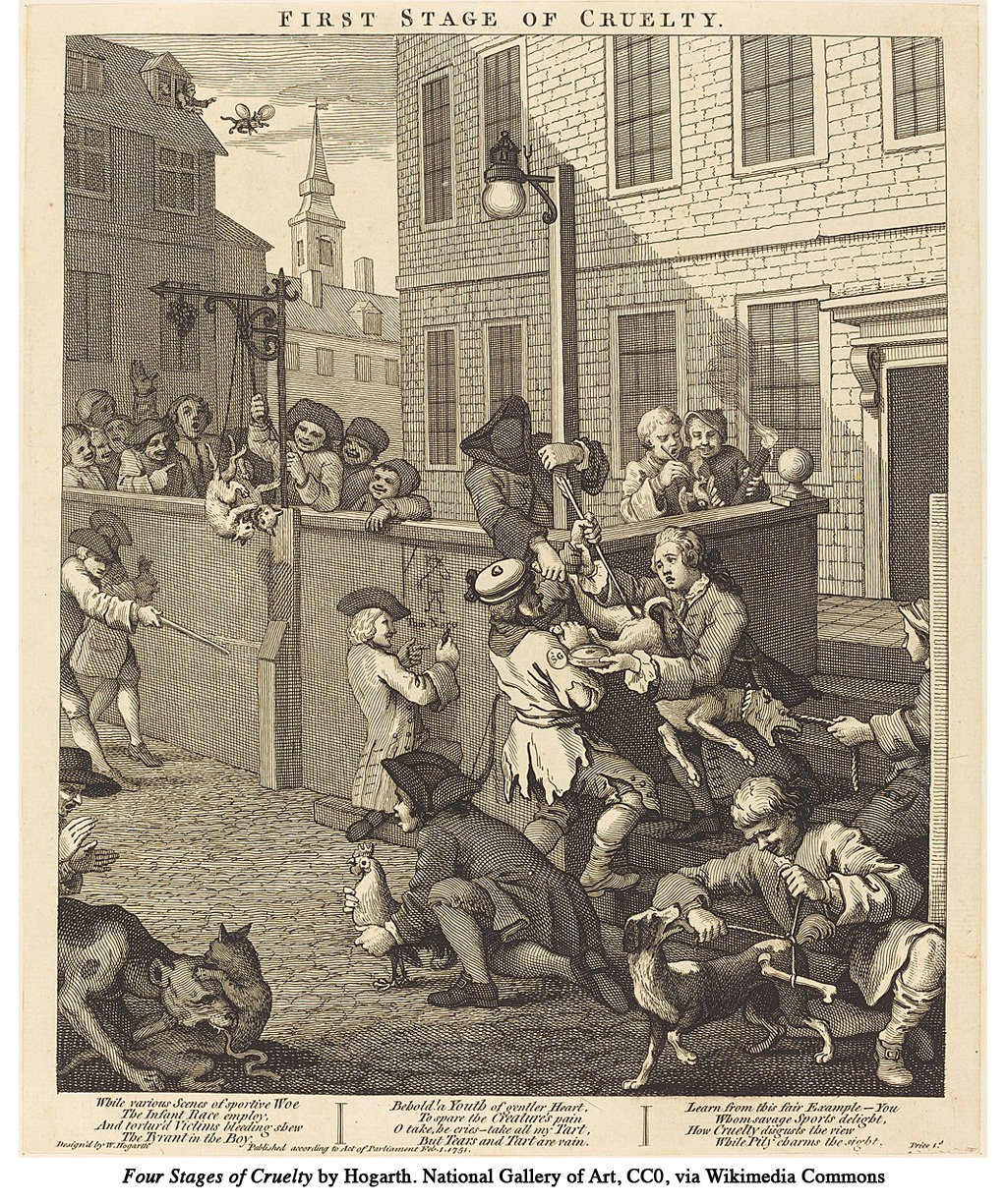 Cock-throwing, or cock shying, remained an immensely popular, crowd-pleasing blood sport right up until the late 1800s, despite its many critics, which included Hogarth, who in 1751 railed against such brutal play, claiming it to be the first stage in a ‘slippery slope’ in his ‘Four Stages of Cruelty’.