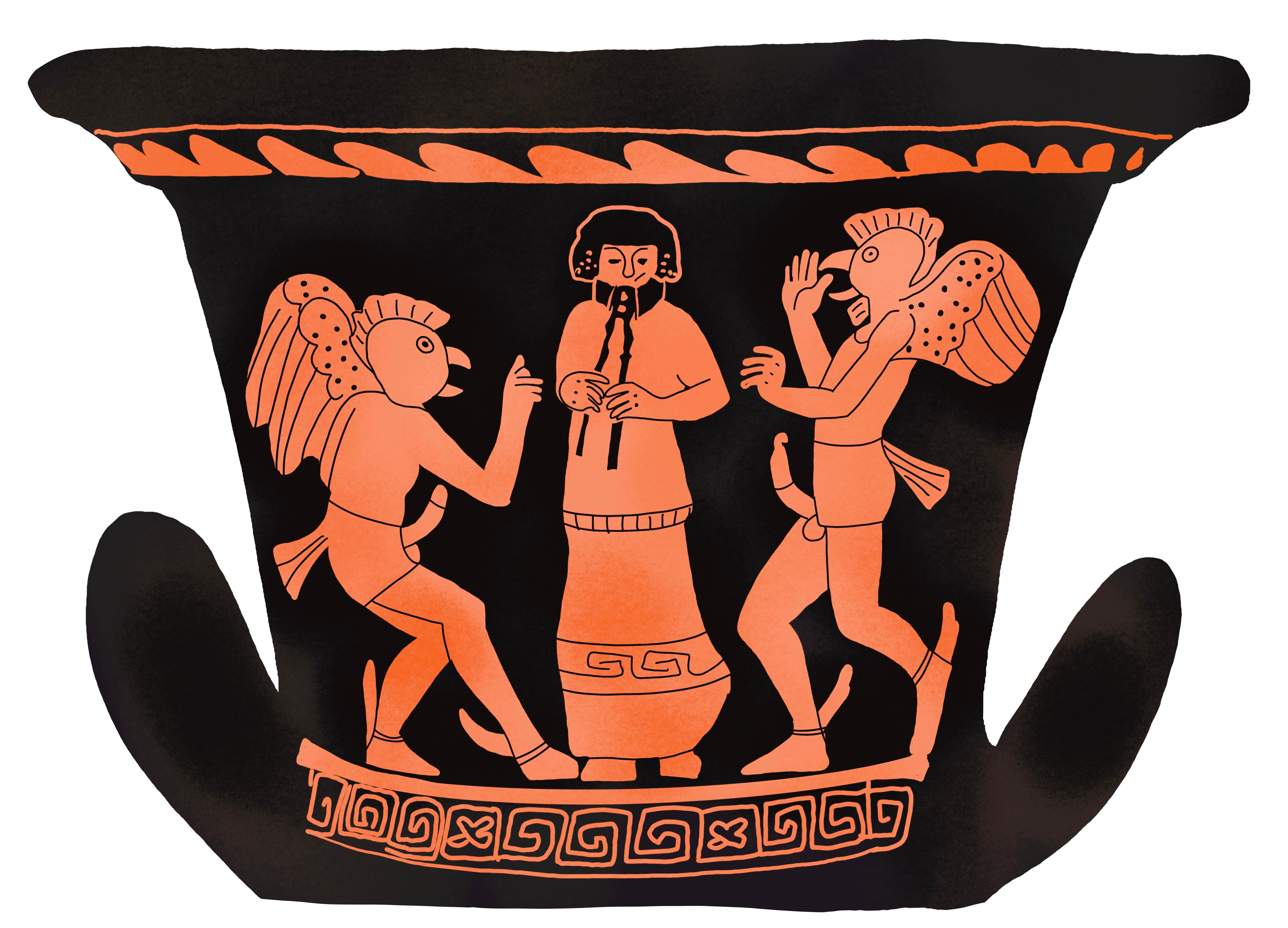 …and this Greek vase depicting The Birds by Aristophanes.